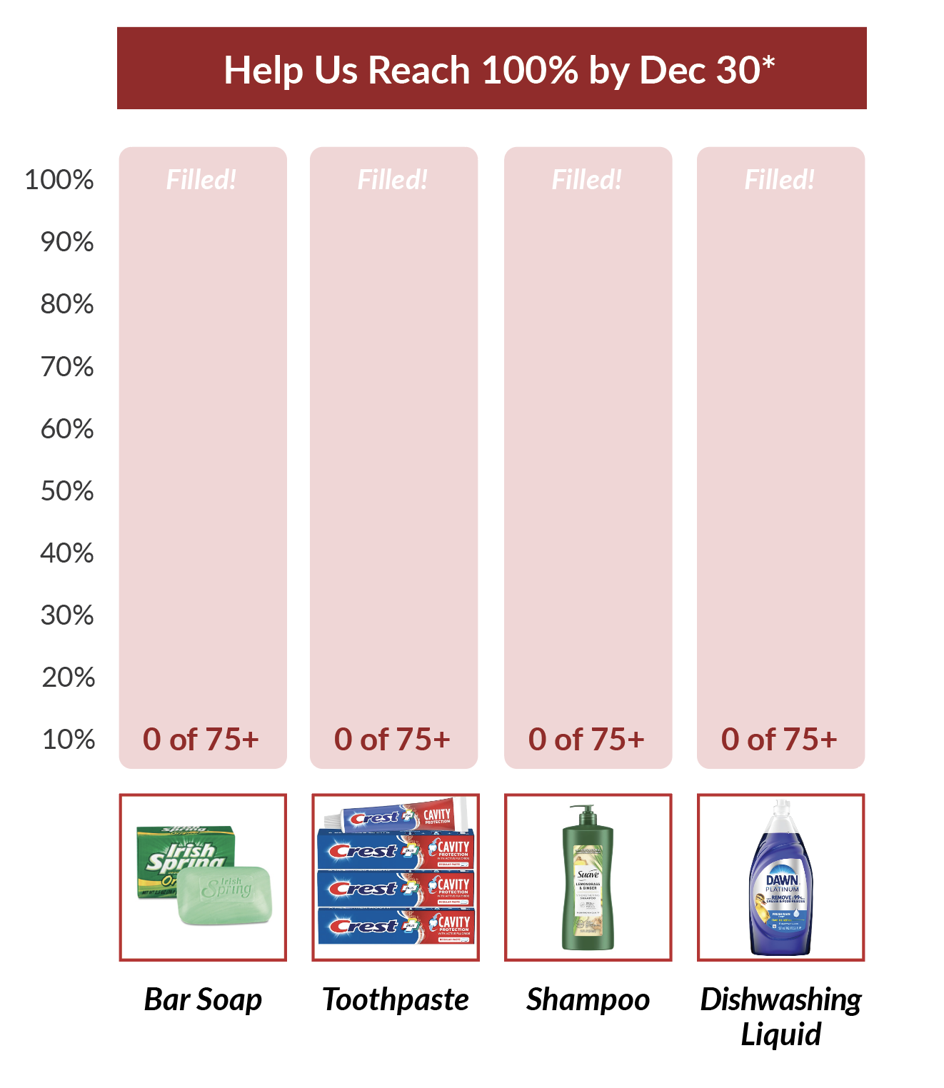 - Purchasing specific priority items listed to the below and dropping them off at the Parish Office. Note: CCC Priorities have changed to now include bar soap and shampoo. Our goal is 75+ for each item, each month.